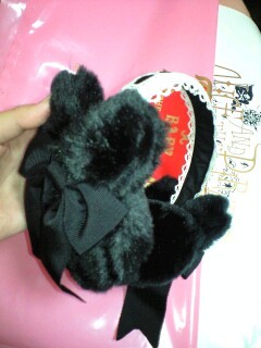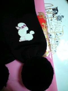 そうそう今さっき、ママンがお土産にBABY,THE STARS SHINE BRIGHTのウサギの耳当てと青い目のプードルがはいったマフラーくれたー!(゜∀゜*)